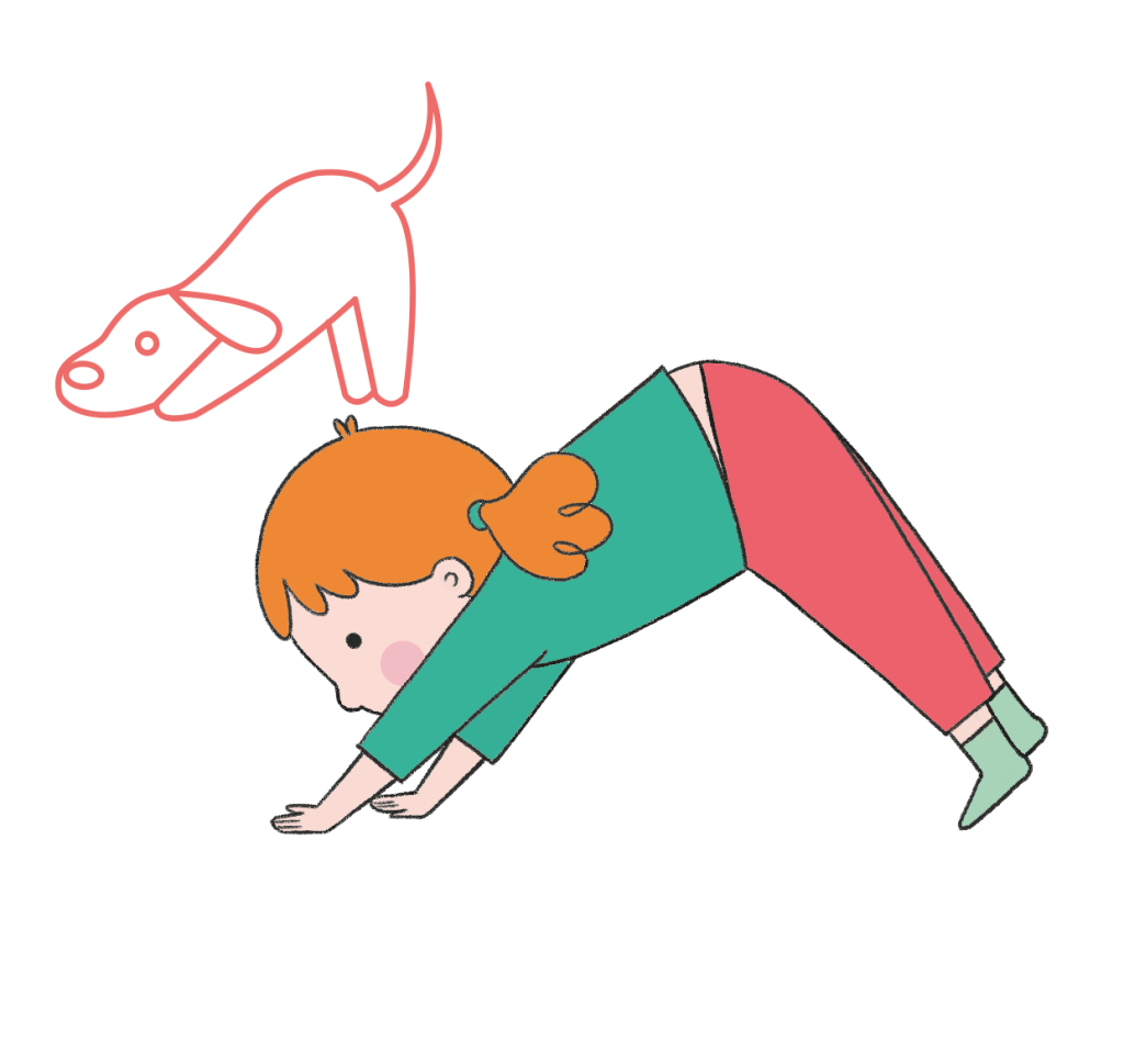 Portati a quattro zampe, posizionando le ginocchia in linea con i fianchi e i palmi delle mani in linea con le spalle. Mantenendo le mani ben appoggiate al pavimento e le braccia distese, sposta il bacino verso i talloni. Poi, spingi sui palmi delle mani e solleva il bacino verso l’alto, distendendo bene le gambe. Il peso dev’essere ben bilanciato in tutto il corpo.
