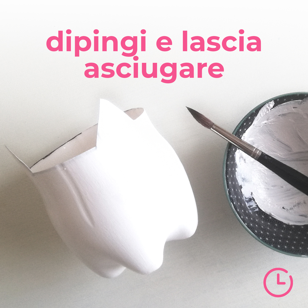 2. Dipingi la bottiglia con il colore acrilico bianco (o un altro colore a tuo piacere!) e lascia asciugare. Per ottenere un risultato migliore, ripeti l’operazione almeno due volte.