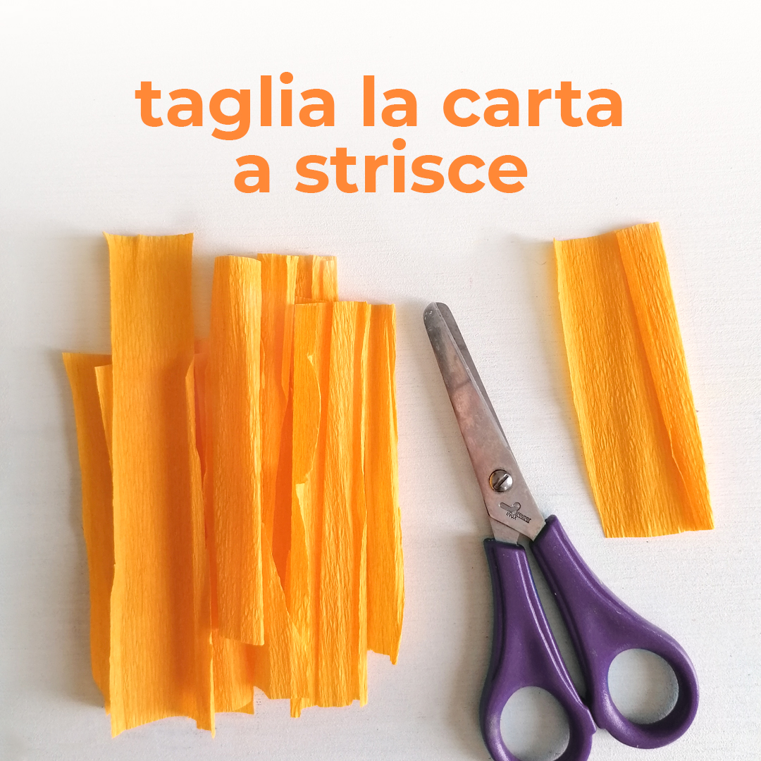 1. Taglia delle strisce di carta crespa di varie lunghezze, in base all’altezza dei diversi barattoli che hai deciso di utilizzare.