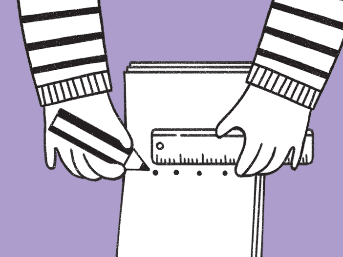 Apri il libretto a metà e, lungo la piega, segna con la matita dei punti equidistanti aiutandoti con un righello. Attenzione: i punti devono essere di numero dispari!