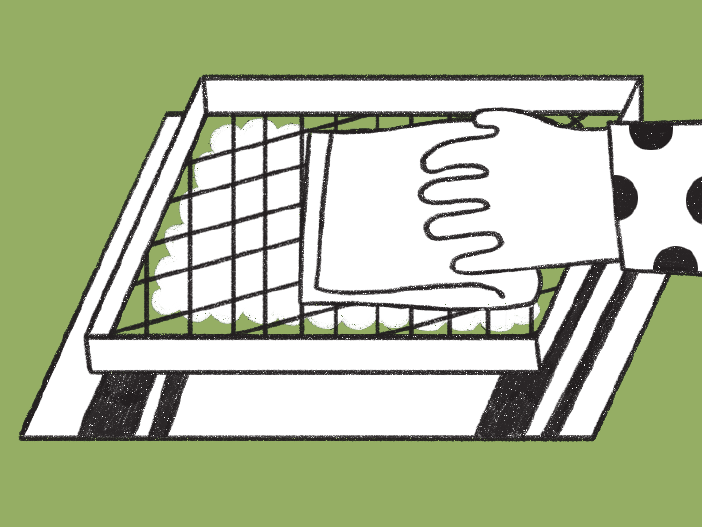 Ribalta il setaccio su un panno da cucina e tampona con un altro panno per staccare il composto.