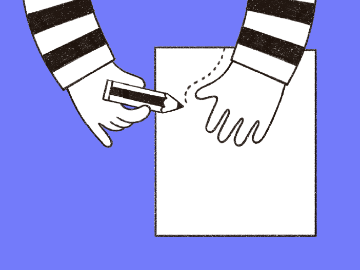 Con la matita, disegna su un cartoncino colorato la forma della tua manina.