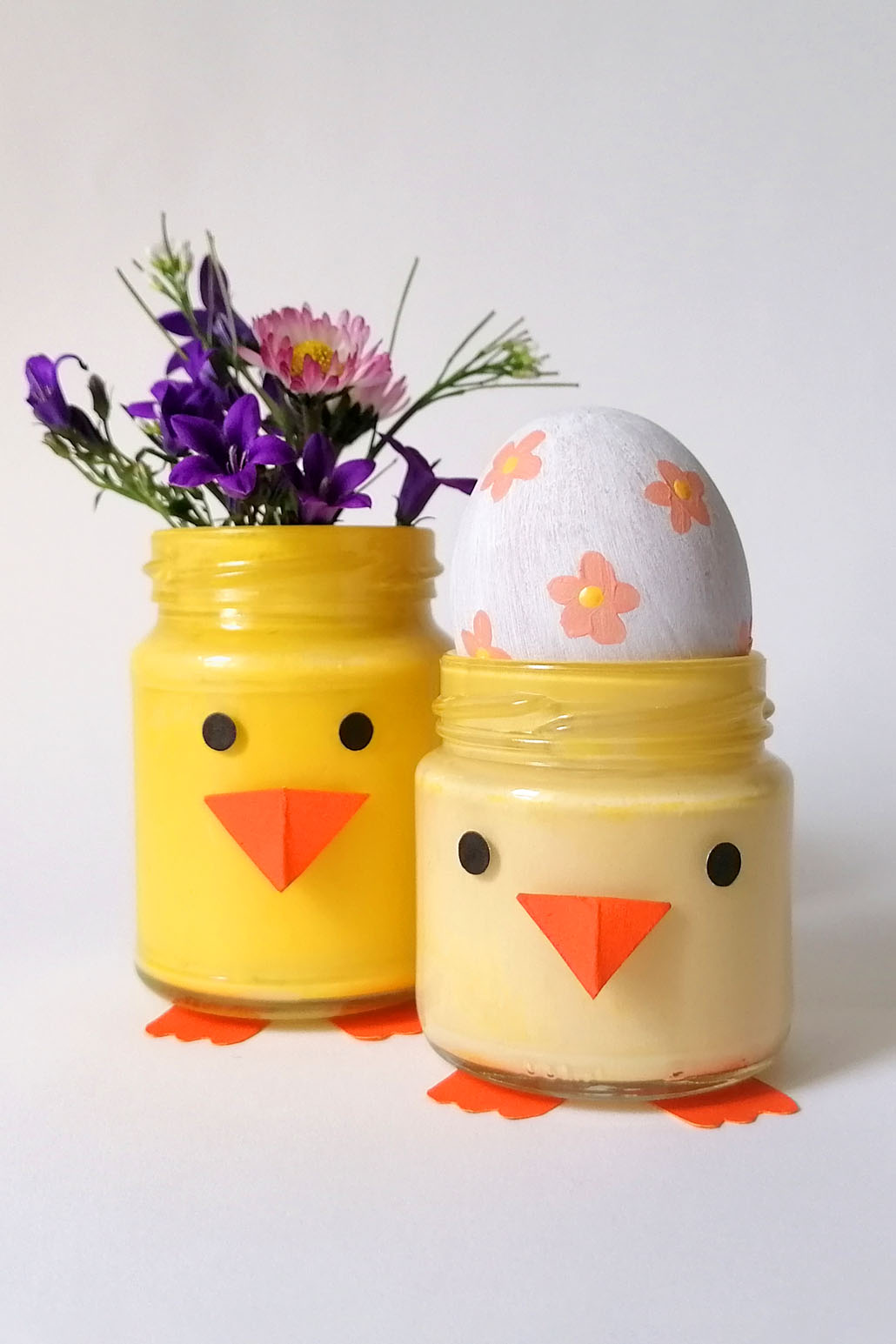Per questa Pasqua ti proponiamo un do it yourself semplicissimo ma di grande effetto! Basterà recuperare qualche vasetto in vetro che sicuramente troverai in casa e il gioco è fatto: insieme ai bambini potrete creare tanti pulcini porta uova o porta fiorellini per decorare la tavola delle feste pasquali.