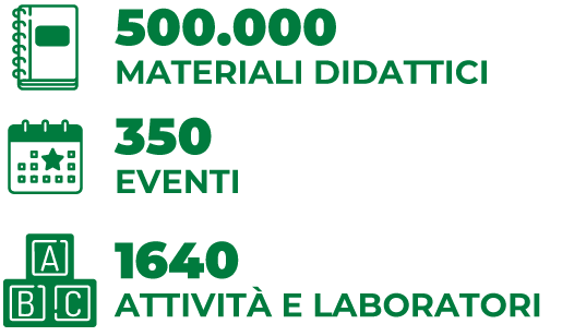 Con la nostra piattaforma didattica online (link diretto)  abbiamo già coinvolto in 1.300 città su tutto il territorio nazionale più di 91.000 alunni della scuola primaria, 4.000 classi e oltre 2.700 insegnanti, offrendo gratuitamente più di 145 contenuti didattici.