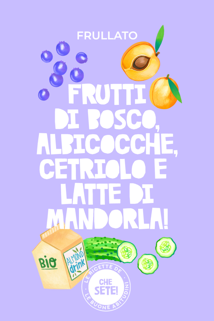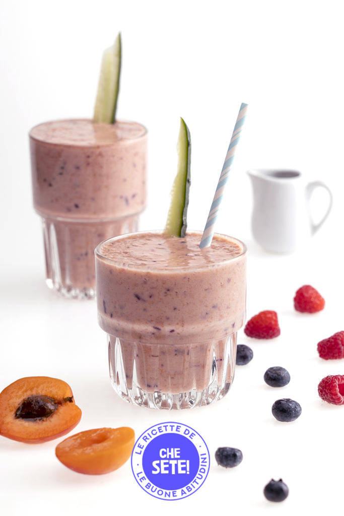 Il frullato che ti consigliamo, con frutti di bosco, albicocche, cetriolo e latte di mandorla, oltre ad essere rinfrescante e dissetante, è anche molto, molto nutriente! I suoi ingredienti, infatti, garantiscono all’organismo importanti elementi per il suo corretto funzionamento.