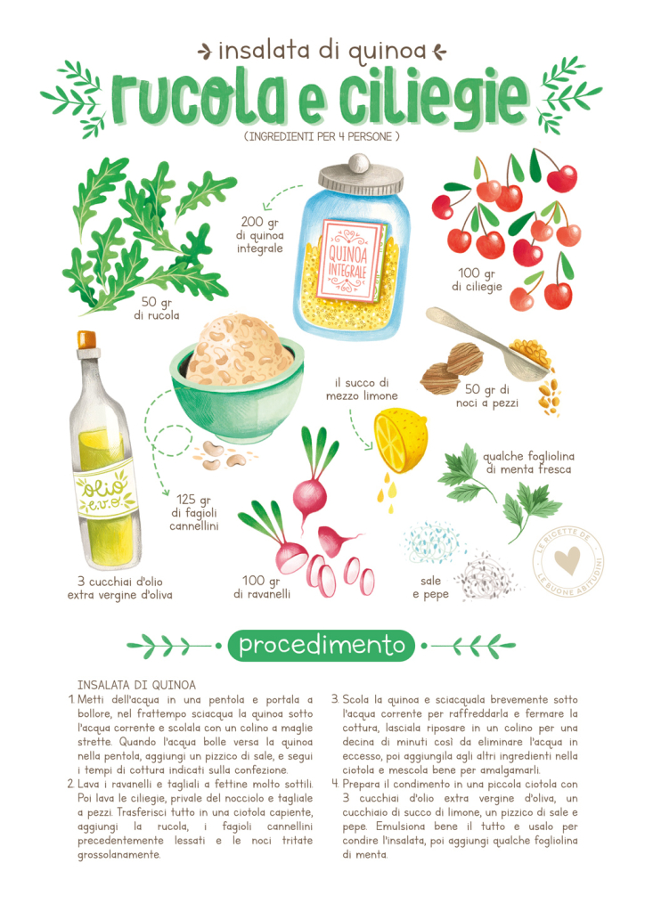 Prepara subito la tua insalata di quinoa, rucola e ciliegie: